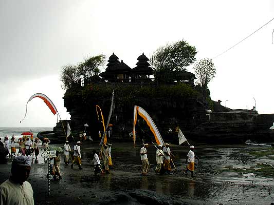 Der Pura Tanah Lot. Hinter uns die Höhle mit den heiligen Schlagen. Hati-hati ular gede !