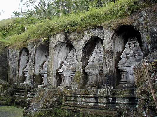 Das balinesische Tal der Könige. Die Candi Schreine in Gunung Kawi, die allerdings keine Gräber, sondern Denkmäler sind.